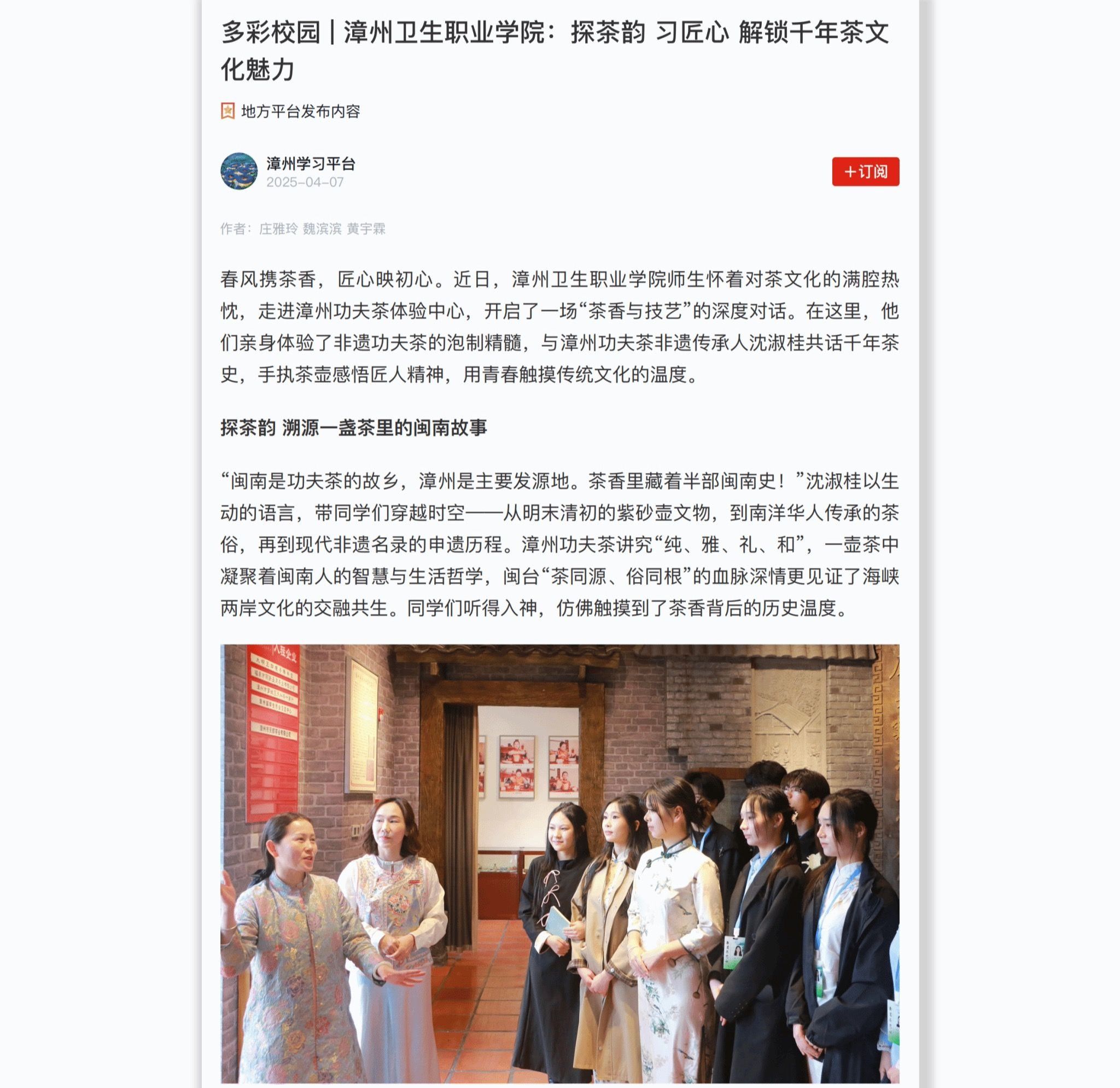 学习强国: 多彩校园 | 漳州卫生职业学院:探茶韵习匠心 解锁千年茶文化魅力