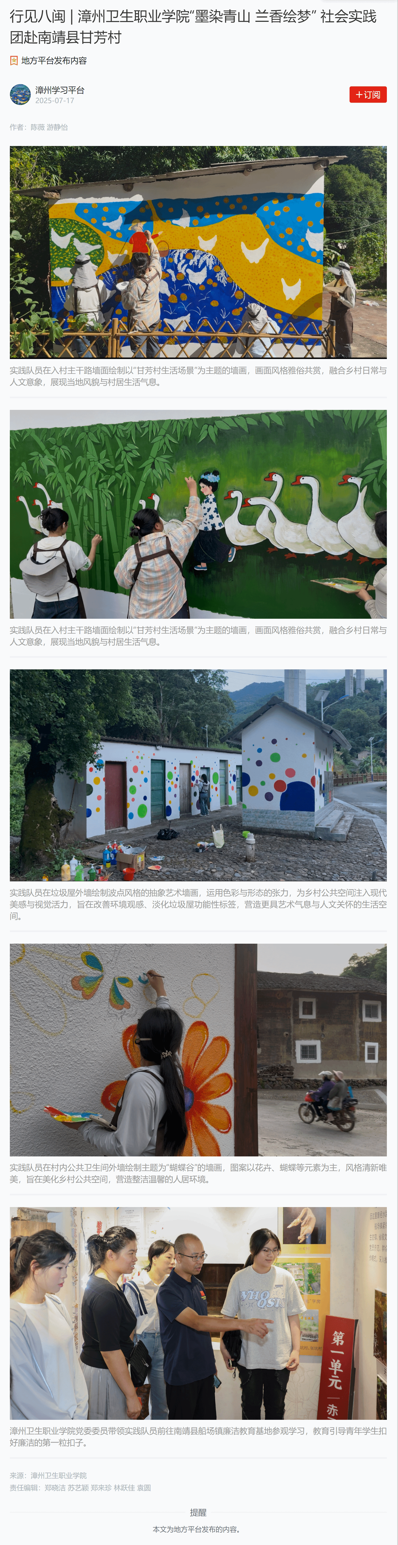 学习强国:行见八闽 | 漳州卫生职业学院“墨染青山 兰香绘梦” 社会实践团赴南靖县甘芳村
