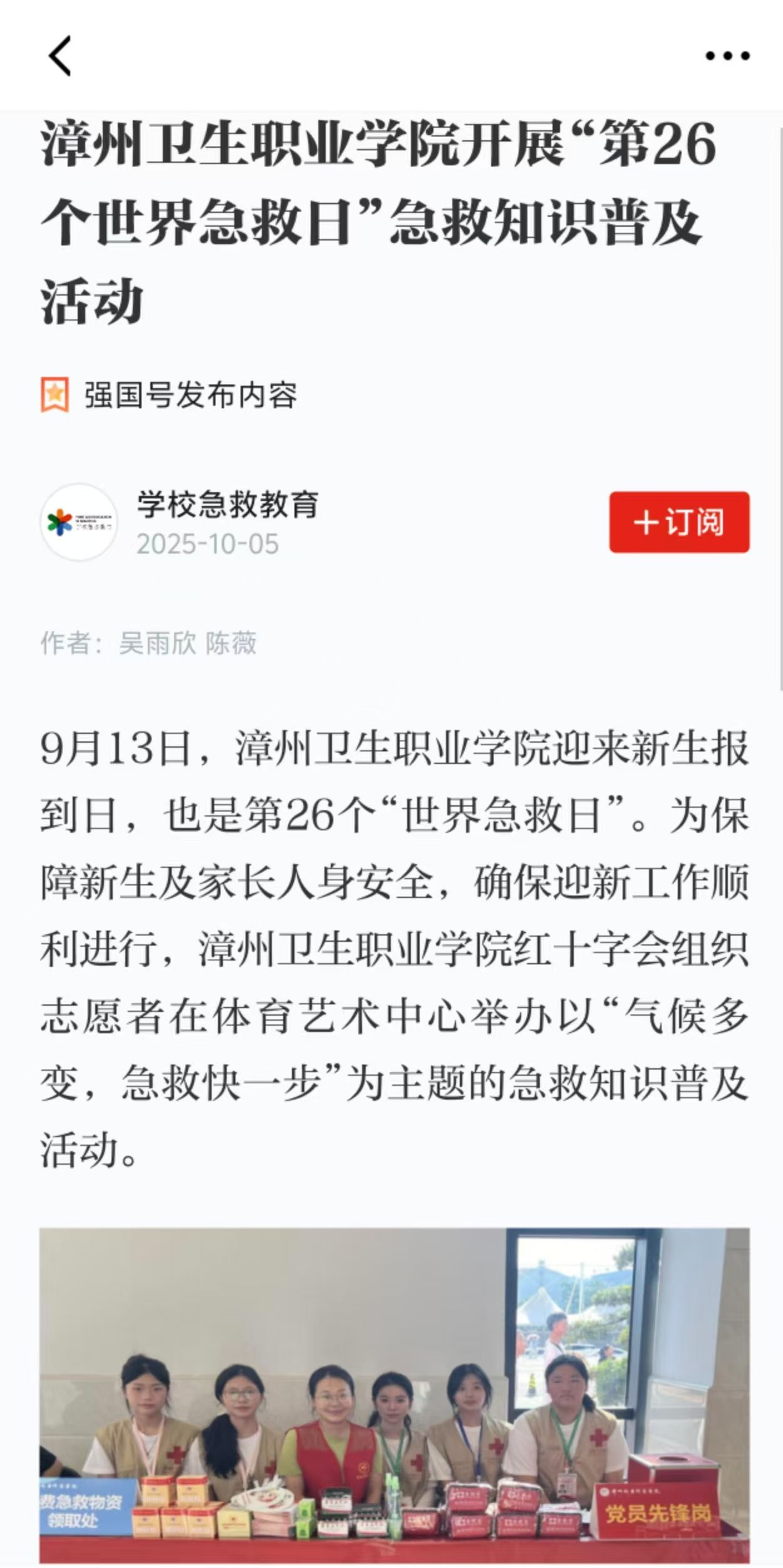 学习强国:漳州卫生职业学院开展“第26个世界急救日”急救知识普及活动
