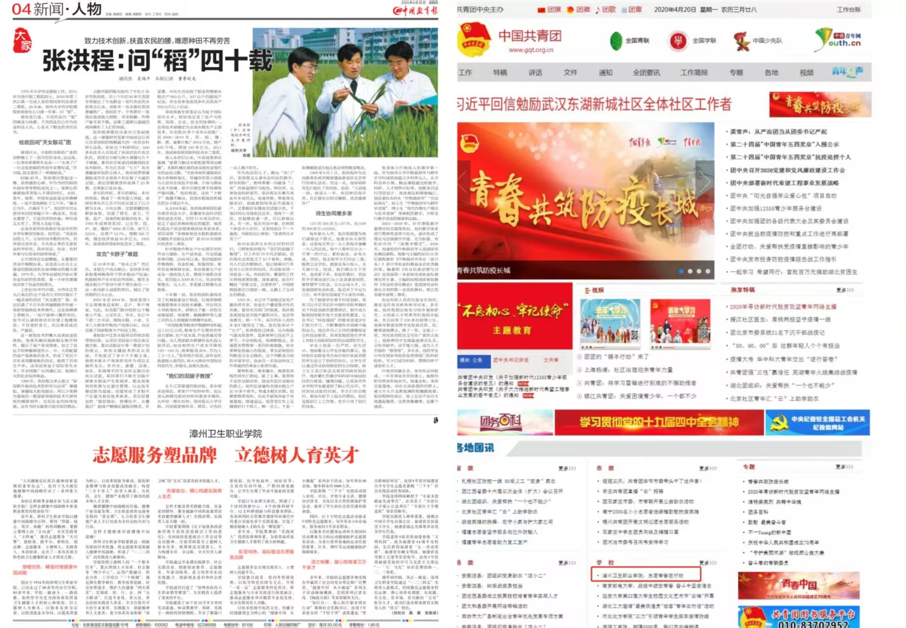 以宣传教育阵地感召青年。围绕学校中心工作和共青团主责主业,先后负责运营的“漳州卫生职业学院”“青春漳卫”官方微信公众号,在全校师生和社会公众中的影响力逐年攀升,学校官微入选2021-2022年度全国高职高专官微50强(第28名),50余次登上团中央、团省委榜单。此外,师生共创的《节气养生说》公益性健康科普系列音频在学习强国总平台、学校官微连载发布,全网播放量超400万次;原创抗疫歌曲《破晓》及MV受到中国青年网、全国学联关注和转发。