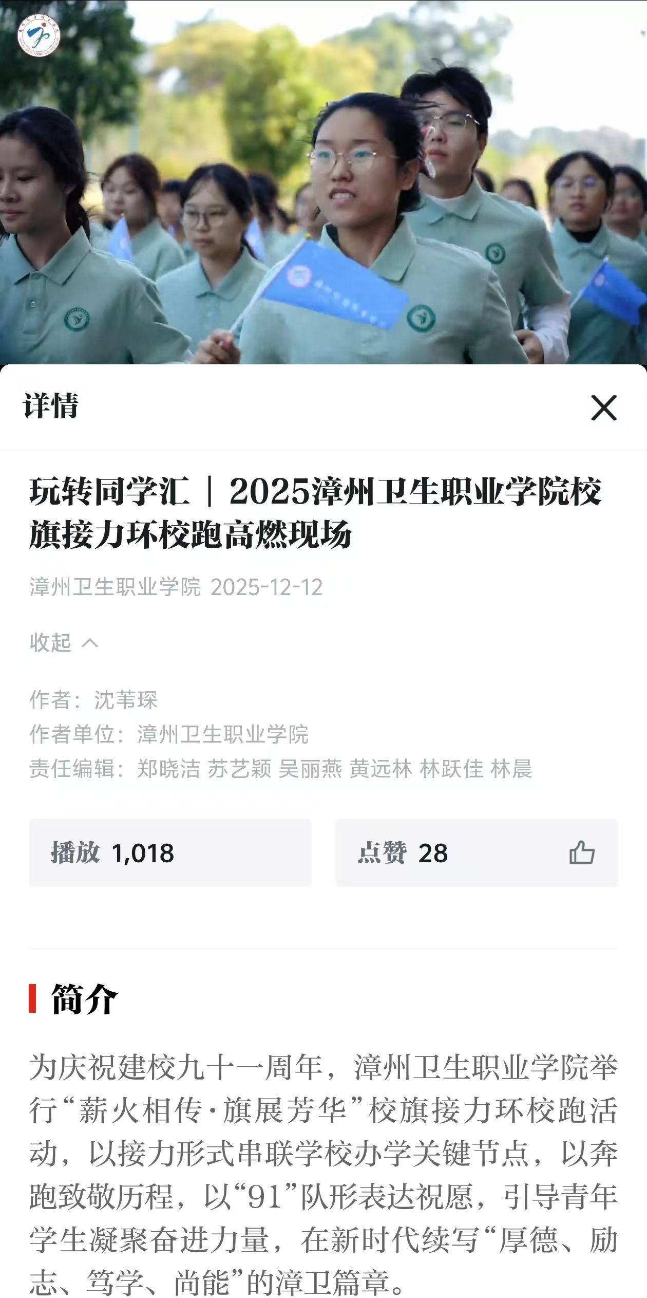 学习强国:玩转同学汇|2025漳州卫生职业学院校旗接力环校跑高燃现场