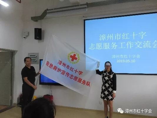 5月10日,漳州市红十字会在我院开展红十字志愿服务服务交流会,市直8支红十字服务队做了经验交流。漳州市红十字会常务副会长李德胜为我院临床系新成立的市红十字应急救护宣传志愿服务队授旗,随后我院三支市级红十字服务队,就宣传祝您健康义诊、宣传无偿献血、宣传遗体捐献等工作进行了交流。