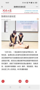 2022年10月21日,《闽南日报》发表题为《急救知识进社区》文章。报道全文如下: