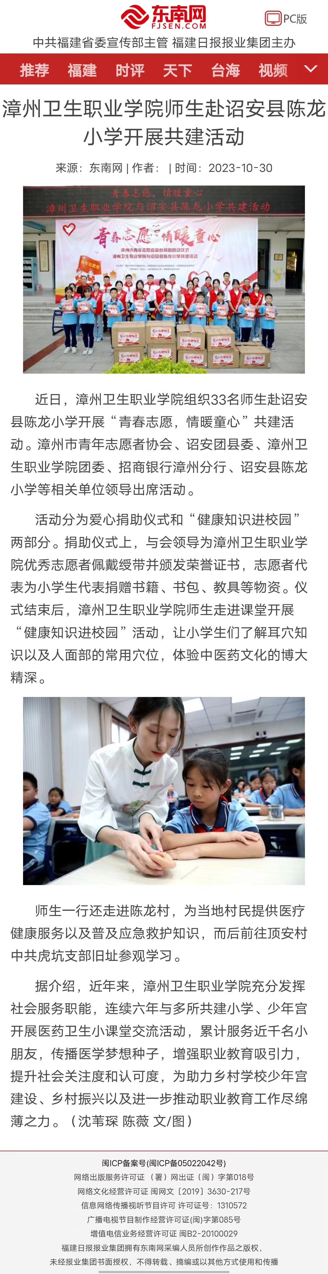 东南网:漳州卫生职业学院师生赴诏安县陈龙小学开展共建活动