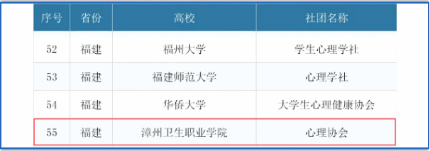 近日,团中央公布了120个直接联系、跟踪培养的高校心理健康社团名单,我校心理协会从540余个高校心理社团中脱颖而出,成功入选,是全省唯一入选的高职院校社团。