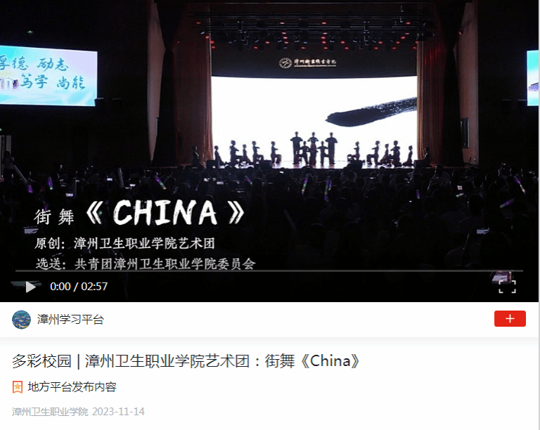 学习强国:多彩校园 | 漳州卫生职业学院艺术团:街舞《China》