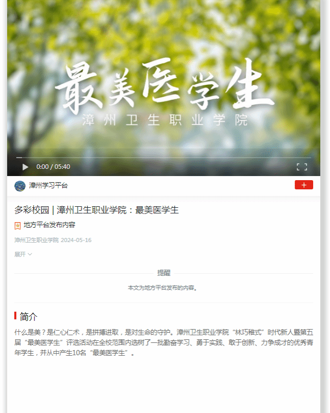 学习强国:多彩校园 | 漳州卫生职业学院:最美医学生