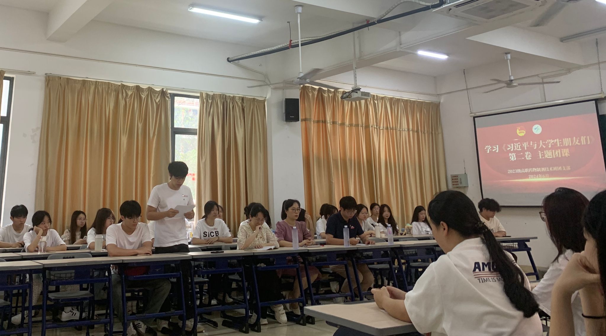 为深入学习习近平总书记关于青年工作的重要论述,落实我校团干部直接联系基层团支部制度,6月12日,校团委副书记沈苇琛走进挂钩联系团支部——2023级高职药物制剂技术班团支部参加主题团课,与支部成员共同学习《习近平与大学生朋友们》第二卷。