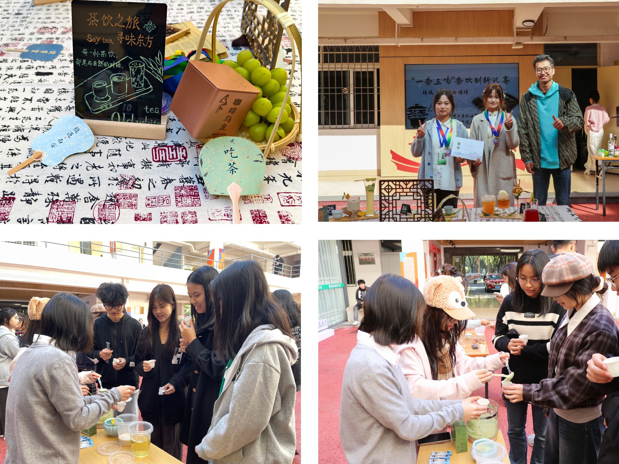 此次大赛以“一茶三喝,传统与新潮的碰撞”为主题,秉持以赛促创、以赛促悟理念,茶艺社同学如同文化的守航者与开拓者,在传统茶文化精髓的依托下,积极拓展创新,使茶文化从汉唐煮茶、宋代点茶、明清泡茶直至现代萃茶不断演进,原液冲泡也延伸为丰富的调制饮品。23 级与 24 级选手宛如创意魔法师,以同一种茶叶变幻出三款风格迥异茶饮,充分彰显茶文化多元性与适应性,展现其博大精深与年轻人创新活力的交融。比赛现场恰似创意繁花盛景,“奇兰星辉饮”小组以白芽奇兰为基,从传统兰花香到融合鲜奶、青提汁,再到与乌龙茶、朗姆酒、椰子水的奇妙搭配,传统与创新和谐共舞;“桑青茶韵”小组以英红九号出发,从传统冲泡到调制桑葚淹奶,再大胆融入青梅酒、冰块与薄荷叶,勾勒独特韵味。评审团仿若智慧星辰,从多维度评判筛选出优胜队伍,推动校园茶文化迈向新高度。