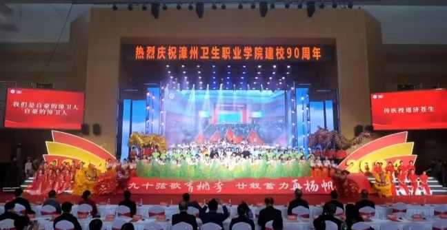 12月7日,漳州卫生职业学院建校90周年暨闽台医药卫生职业教育高质量发展研讨会成功举办,由团委承办的“九十弦歌育桃李 廿载蓄力再扬帆”校庆文艺汇演也在体育艺术中心圆满落下帷幕。省市领导,省内外兄弟院校领导,两岸专家学者,学校退休老领导,校友代表、师生代表、媒体代表等3000余人现场观看了演出。