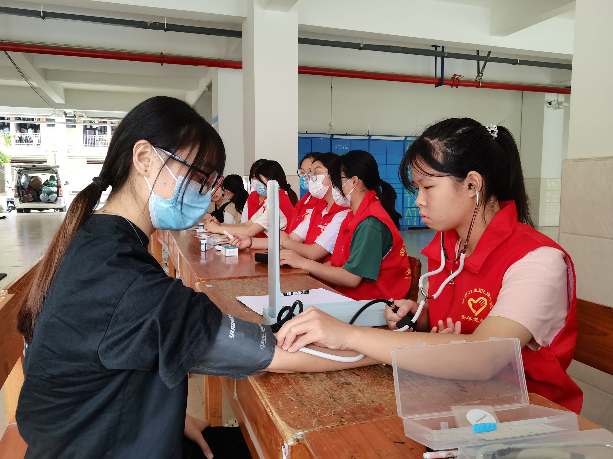 本次活动为同学们提供了艾灸、检查牙齿、推拿、拔火罐、测血糖、量血压、心肺复苏等项目。志愿者根据同学们不同的问题情况为大家答疑解惑,耐心叮嘱同学日常要保持合理饮食、规律作息的习惯。
