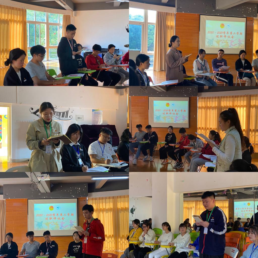 11月13日下午,我院学生会2020-2021第二学期在述职评议会在学生素质发展中心音乐教室顺利召开。学生处、团委相关老师、院学生会主席团及工作部门负责人、学生代表等出席会议。