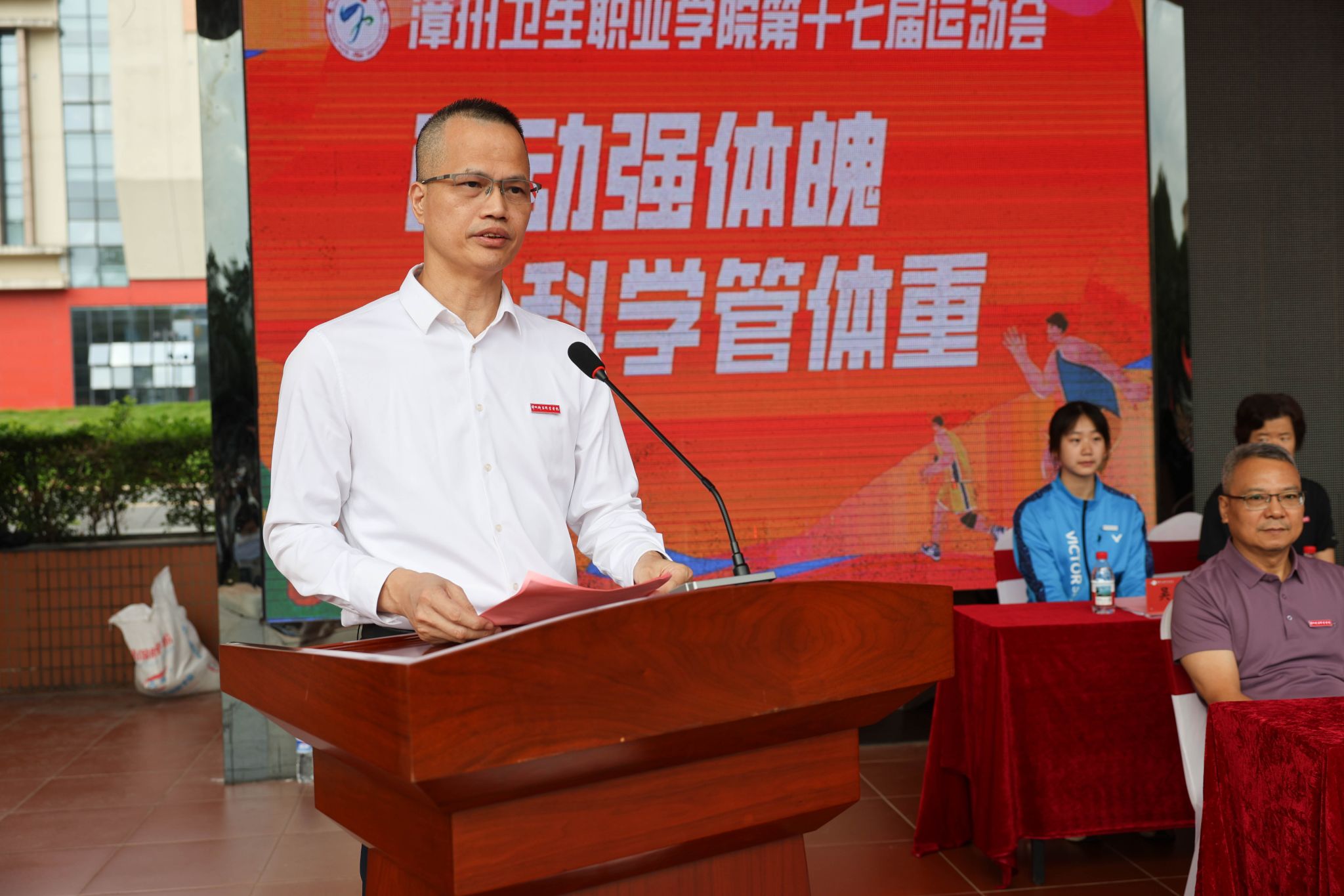 校长何坚发表致辞并宣布运动会开幕。他表示,学校始终坚持“健康第一”教育理念,将体育作为落实立德树人根本任务、提升学生综合素质的基础性工程,持续推进体教融合,不断推动体育工作迈上新台阶。他希望以校运会为契机,引导师生实现以体育人,锤炼坚强意志。将体育赋予的拼搏进取、坚持不懈的精神,转化为攻克难题、面对挫折、坚守初心的力量;以体育心,塑造健康人格。鼓励师生通过体育运动培养积极乐观心态,学会在挫折中成长,在合作中收获友谊,成为身心和谐、全面发展的新时代青年;要以体育魂,涵养协作精神。期望师生深刻理解“独行快,众行远”的道理,将赛场上的默契与信任延续到未来的学习与工作中,转化为加快推进学校事业发展的豪情,共同书写漳卫院高质量内涵式发展新篇章。