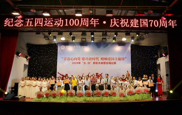4月29日晚,我院在阳光体育活动中心隆重召开“青春心向党 建功新时代 唱响爱国主旋律”2019年“五四”表彰大会暨合唱比赛,学院全体领导班子成员,党委委员,各处室、系部、直属科负责人,全体学生工作队伍和各系师生代表共1300多人欢聚一堂,共同纪念五四运动100周年、庆祝中国共青团成立97周年,大会由学生处主持。