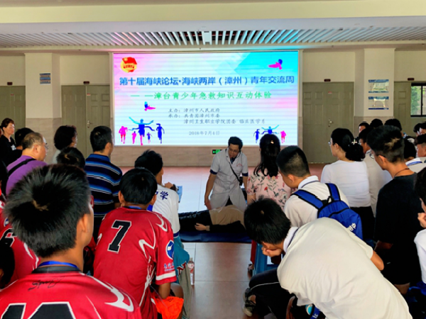 7月4日,由漳州市人民政府主办,漳州团市委、我院团委和临床医学系承办的漳台青少年急救知识互动体验活动于我院举行,80位两岸学子共同参与其中。漳州团市委副书记陈昕、统战部部长陈婉儿,我院团委书记、临床医学系党总支书记、系副主任等出席此次活动。