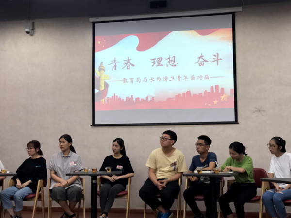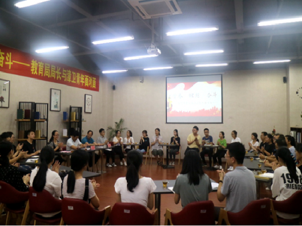 6月6日晚,我院团委举办了一场“青春 理想 奋斗”——教育局局长与漳卫青年面对面”活动,活动以座谈会的形式在图书馆一楼书吧举行。市教育局局长黄江辉、学院党委林忠书记、党工部、办公室、学生处、团委等部门负责人,以及28名青年学生代表参加了此次座谈会。座谈会由团委书记主持。