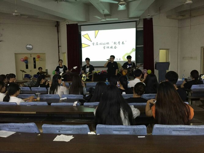 为了活跃校园文化气氛,院吉他协会于5月29号晚上七时三十分,在明德楼3教举办了Adale杯“致青春”吉他晚会活动。