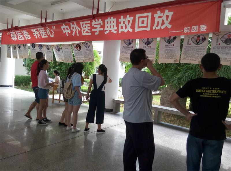 5月17日,由院团委会主办的“尊医德,养医心”中外医学典故展于明德楼大厅拉开序幕。