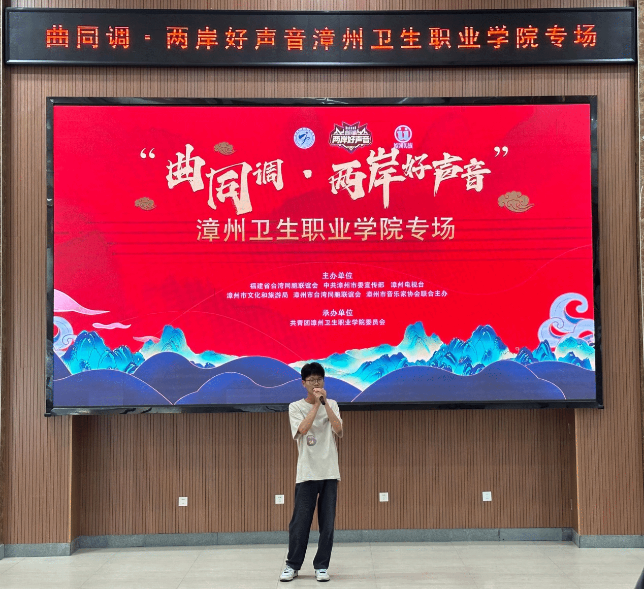 4月20日下午,由福建省台湾同胞联谊会、中共漳州市委宣传部、漳州市文化和旅游局、漳州市台湾同胞联谊会、漳州电视台、漳州市音乐家协会主办,共青团漳州卫生职业学院委员会承办的第三届“曲同调·两岸好声音”海峡两岸大型闽南语歌曲演唱大赛在我校学术报告厅举办。