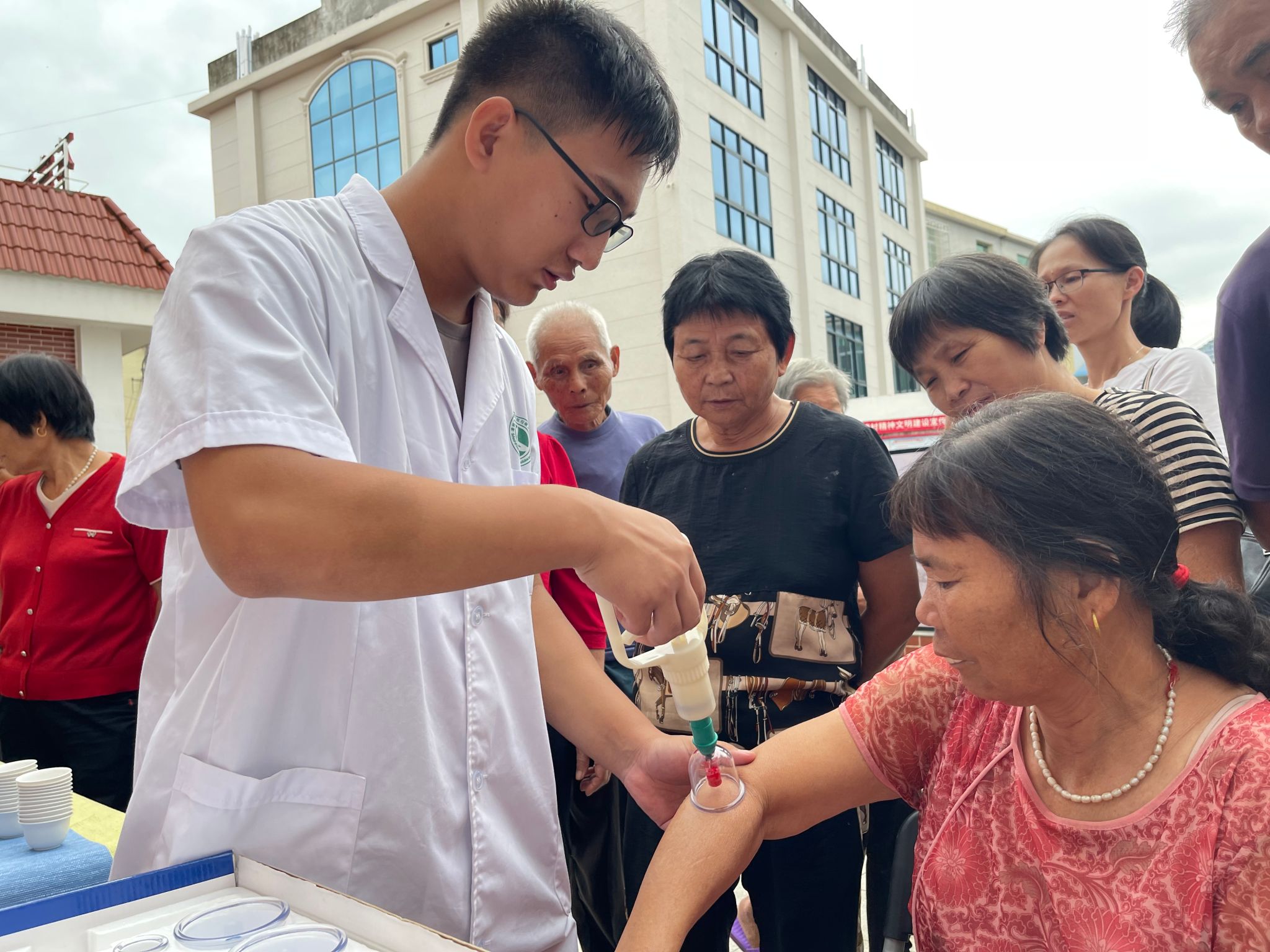 活动现场,三里齐康社的同学们发挥专业优势,为村里的老人们开展健康咨询、拔气罐、刮痧、推拿、耳穴贴等康复理疗服务,并针对性地提出相应的康复管理建议,普及了养老知识。嘉茗茶艺社的同学们为老人们带来精彩的茶艺表演,并向大家讲解了六大茶类的特点、茶的营养价值、冲泡方法等内容,尤其从养生的角度介绍了秋季适合的茶饮。让村里老人们度过一个浓情温暖、快乐难忘的重阳节。