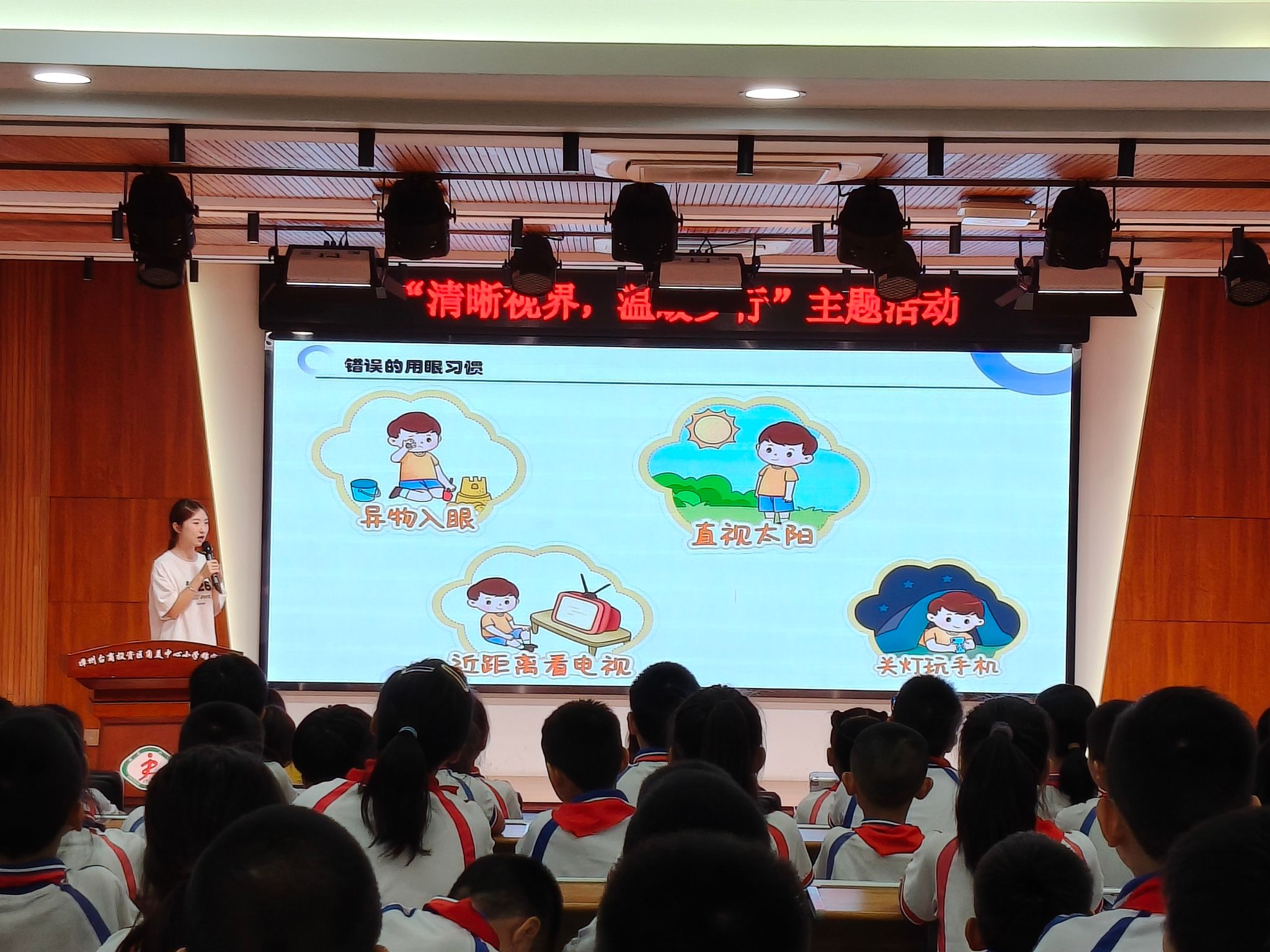 作为福建省儿童青少年近视防控科普基地,学校开展护眼活动惠及青少年近40万人。课堂上,专业学生化身“护眼讲师”,借助眼球模型与动画视频,用生动语言讲解近视成因、读写姿势规范等知识。当小老师抛出“连续看书多久要休息”的问题时,小手如春笋般齐刷刷举起。通过深入课堂宣讲,不仅为孩子们普及了科学护眼知识,更以“党建+专业服务”模式打通了高校资源下沉基层的渠道。