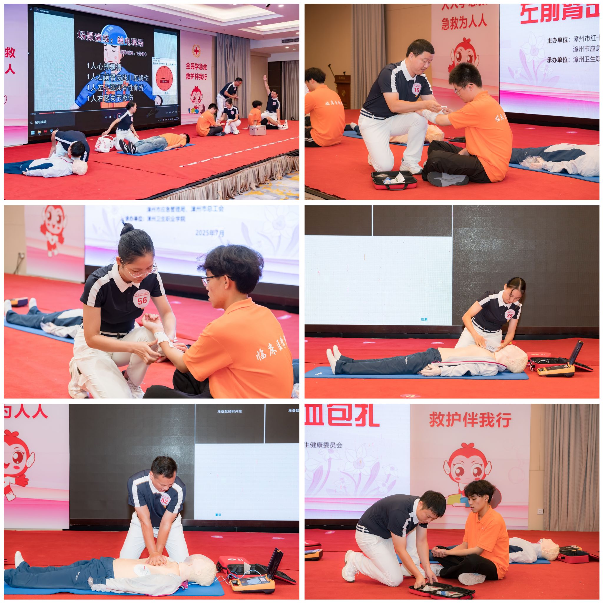 作为第二批全国学校急救教育试点学校,我校依托漳州市红十字应急救护培训基地及专业师资队伍,常年开展师生应急救护培训,普及“人人学急救、急救为人人”理念与技能,通过融入课堂教学、志愿服务和社会培训,构建“系统培训为基础、实操演练为抓手、社会服务为延伸”的工作机制,全面提升校园防灾避险与自救互救能力,有力促进平安校园、健康校园建设。