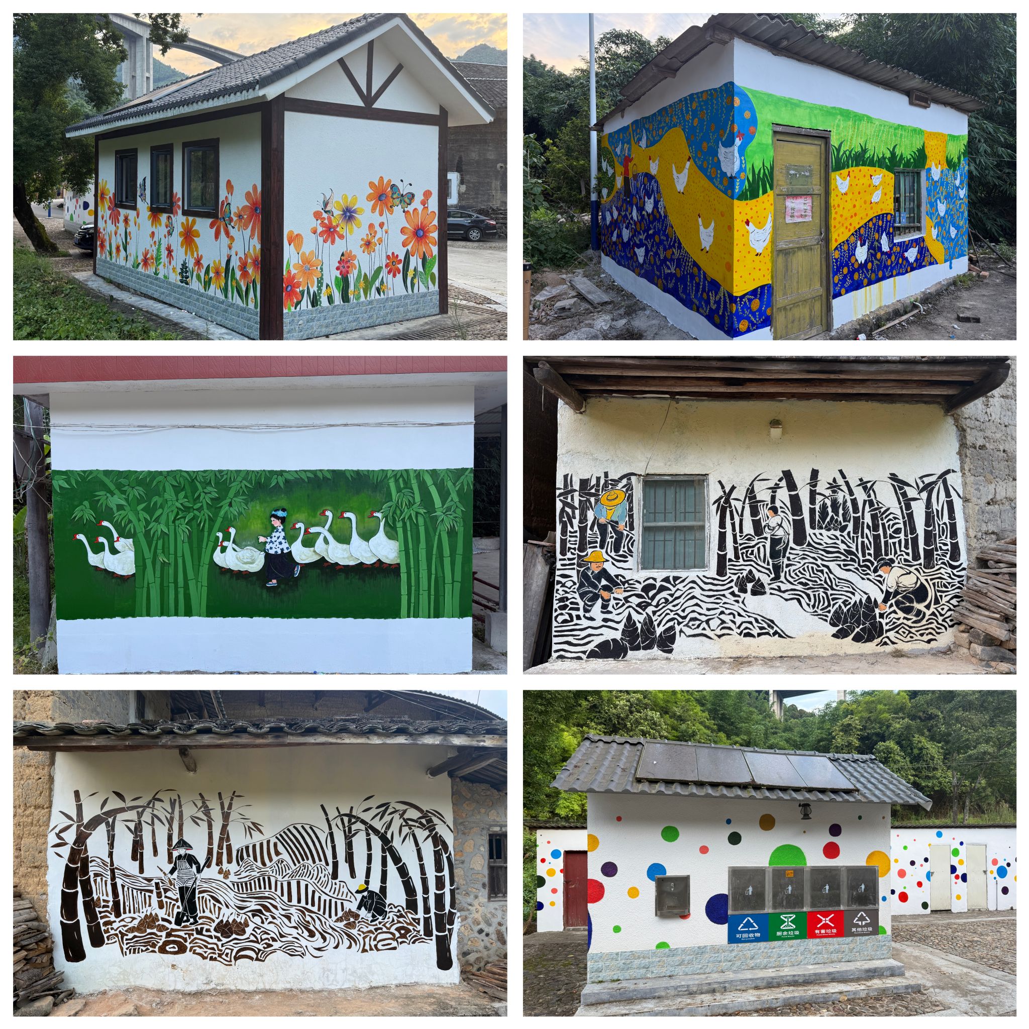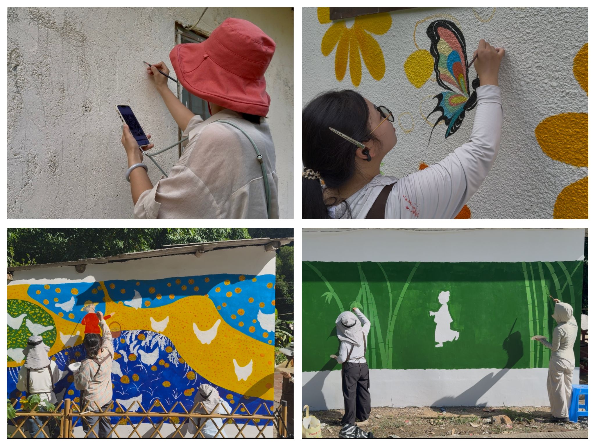 为贯彻落实习近平总书记在福建考察时的重要讲话精神,积极发挥高校美育在服务乡村文化振兴中的作用,在社团指导老师带领下,我校墨兰书画协会组建“墨染青山 兰香绘梦”社会实践团,一行10人赴南靖县甘芳村,以艺术为笔、以墙面为卷,开展了一场“墙绘行动”,让老墙蜕变为展现乡村新貌的“画廊”。