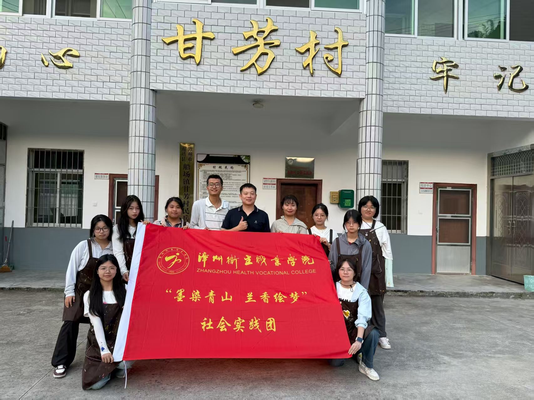 本次活动为期5天,团队以“勾勒底图、分组填色”的方式推进,共完成墙面绘制12处。在专业老师和学生的巧手下,正经历着华丽的蜕变。一幅幅生动鲜活、富有乡土气息的画卷“跃然墙上”。这些墙绘不仅美化了环境,更成为传递文明乡风、展示乡村新貌、讲述甘芳故事的“露天画廊”。甘芳村党支部书记表示:“来自漳州卫生职业学院的这一支有情怀、有本领、有纪律的学生团队,不仅把这些画画在了墙面上,更画进了村民心里。