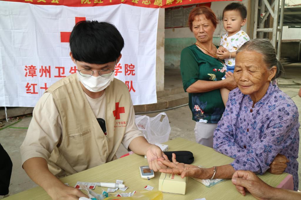 10月7日,在重阳节来临之际,漳州卫生职业学院团委、红十字会志愿服务中心由专业指导老师、学生志愿者组成的“助力健康”服务队,到龙海市林前村开展“服务乡村老人 助力健康中国”医疗下乡活动,为乡村老人送关怀送健康,活动现场吸引了400多位老人参加。