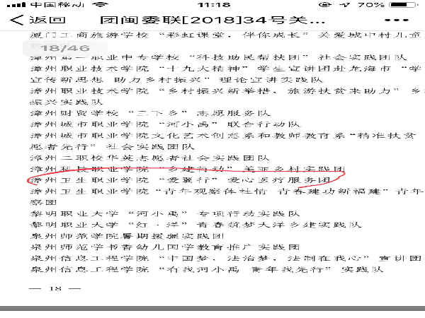 近日,由省委宣传部、省委文明办、省委教育工委、团省委、省学联组织开展的2018年省大中专学生“三下乡”社会实践活动优秀团队评选中,临床医学系“爱翼行”爱心医疗服务团凭借优异的实践表现从参加评选的3603支实践团队中脱颖而出荣获2018年省社会实践活动优秀团队。此次获奖充分肯定了我系“爱翼行”爱心医疗服务团赴漳浦县湖西畲族乡后溪村开展系列爱心服务活动的实践成效与意义。