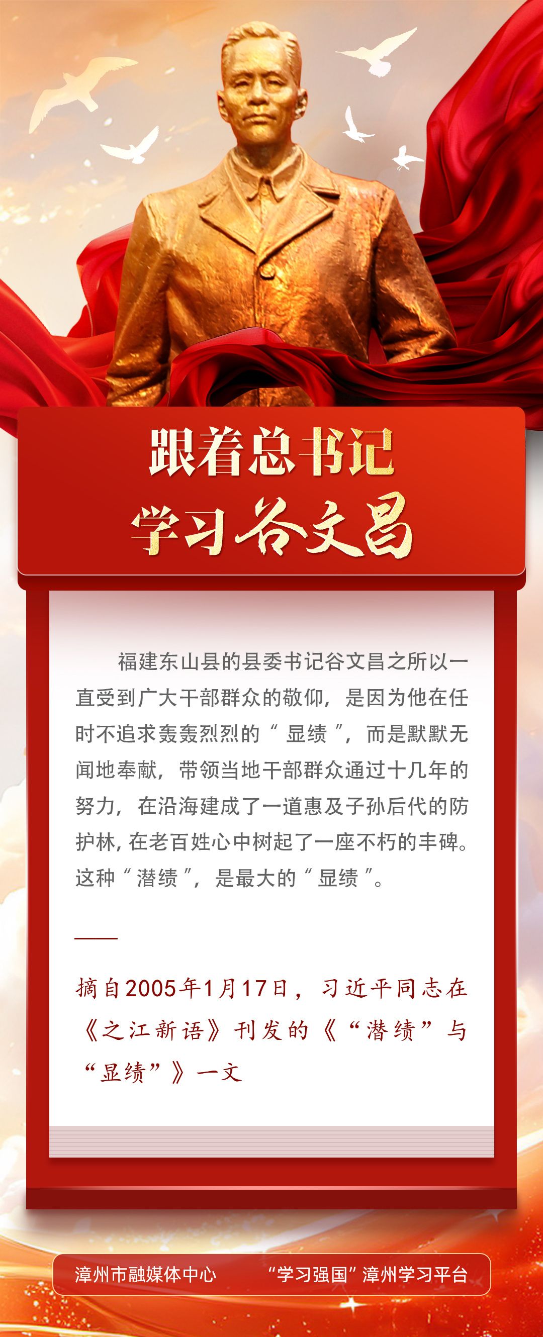 福建东山县的县委书记谷文昌之所以一直受到广大干部群众的敬仰,是因为他在任时不追求轰轰烈烈的“显绩”,而是默默无闻地奉献,带领当地干部群众通过十几年的努力,在沿海建成了一道惠及子孙后代的防护林,在老百姓心中树起了一座不朽的丰碑。这种“潜绩”,是最大的“显绩”。
