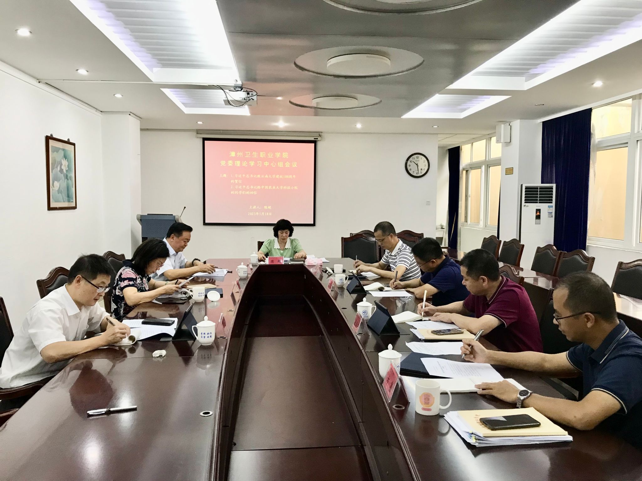 5月18日,我院党委理论学习中心组召开学习会,传达学习习近平总书记致云南大学建校100周年的贺信精神及习近平总书记给中国农业大学科技小院的同学们的回信精神,会议由党委书记陈超主持,党委委员参加。