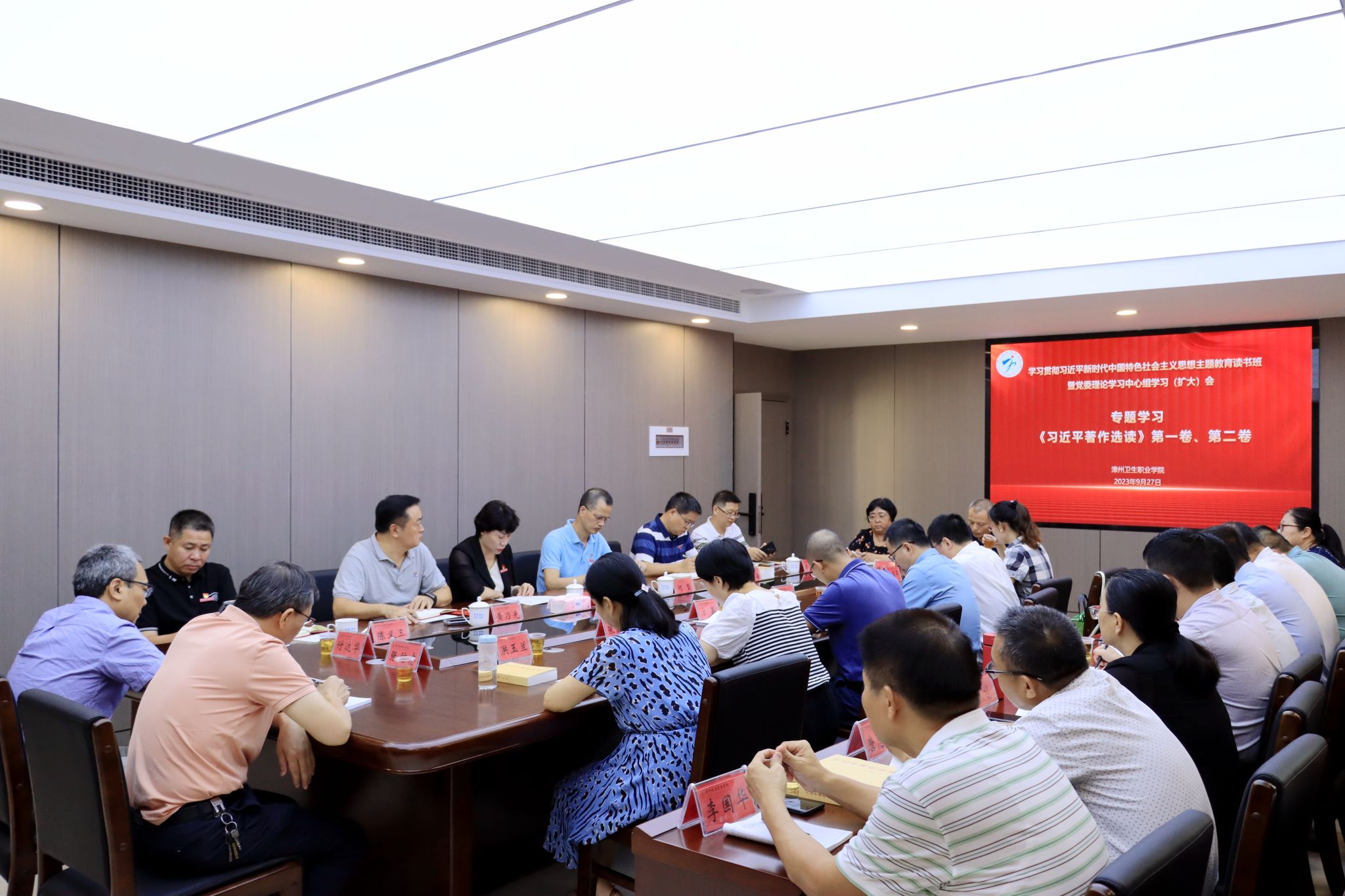 9月27日上午,我校在行政楼第二会议室举办学习贯彻习近平新时代中国特色社会主义思想主题教育读书班暨党委理论学习中心组(扩大)学习会,专题学习《习近平著作选读》第一卷、第二卷,全体党委委员、副处级及以上干部参加,会议由校党委书记陈超主持。