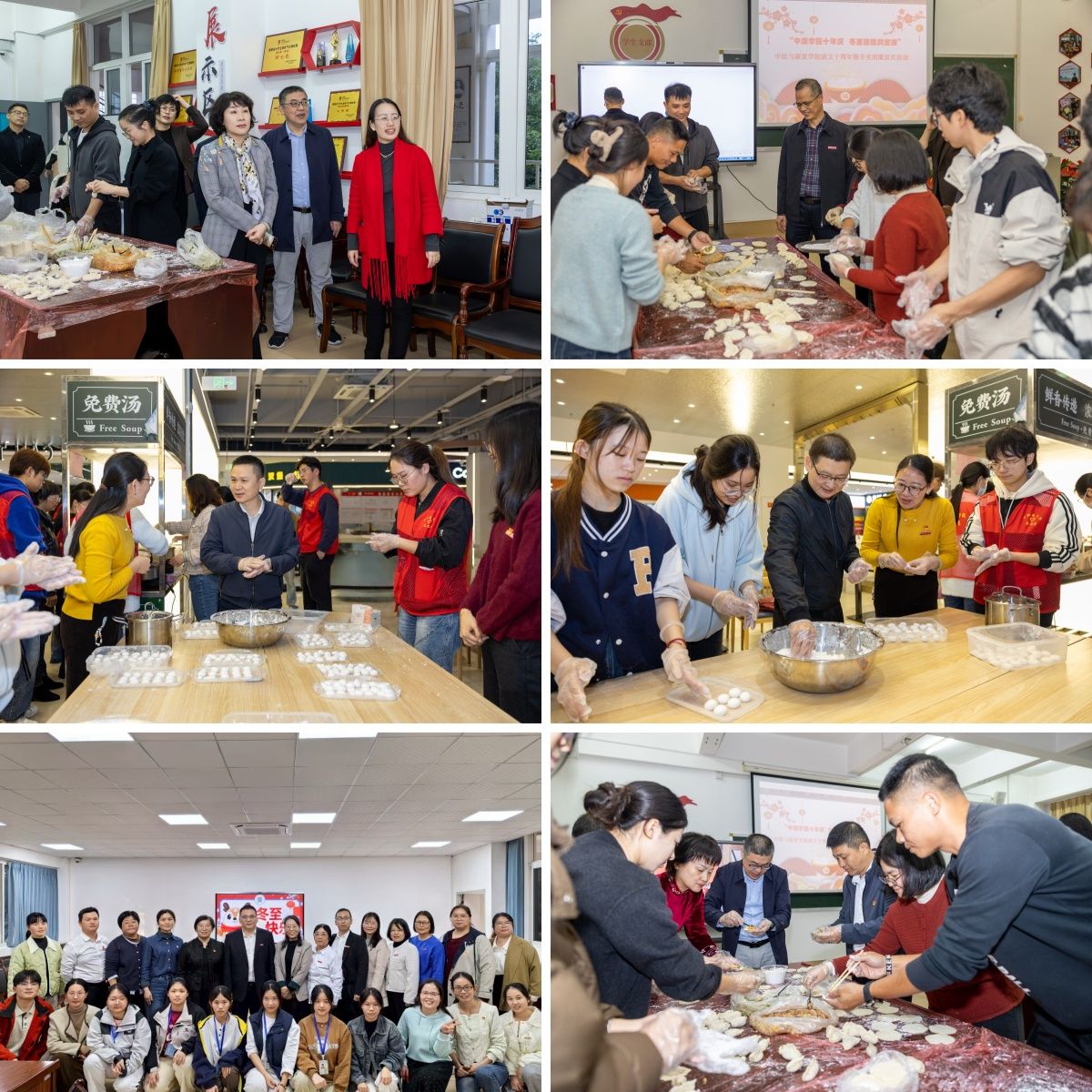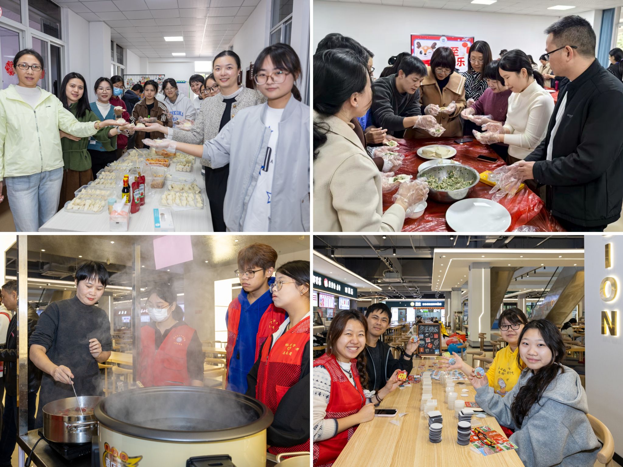 各学院积极响应,结合自身专业特色,围绕冬至节气精心策划组织了形式多样、内涵丰富的文化体验活动。校领导们深入活动现场,与师生共同动手制作蕴含养生智慧的特色汤圆与饺子,在劳动协作中感受“药食同源”的中医理念;共同欣赏剪纸书画、交流南北风俗,于欢声笑语间体味传统艺术的魅力与家的温暖;与同学们围桌而坐,亲切互动,在揉面、包馅的协作中拉近距离,在分享习俗、畅谈未来的交流中增进理解。活动还将温暖延伸至校园各个角落,一份份亲手制作的热气汤圆被送至学生宿舍和后勤保障一线,营造了和谐共育、互助友爱的浓厚校园氛围。