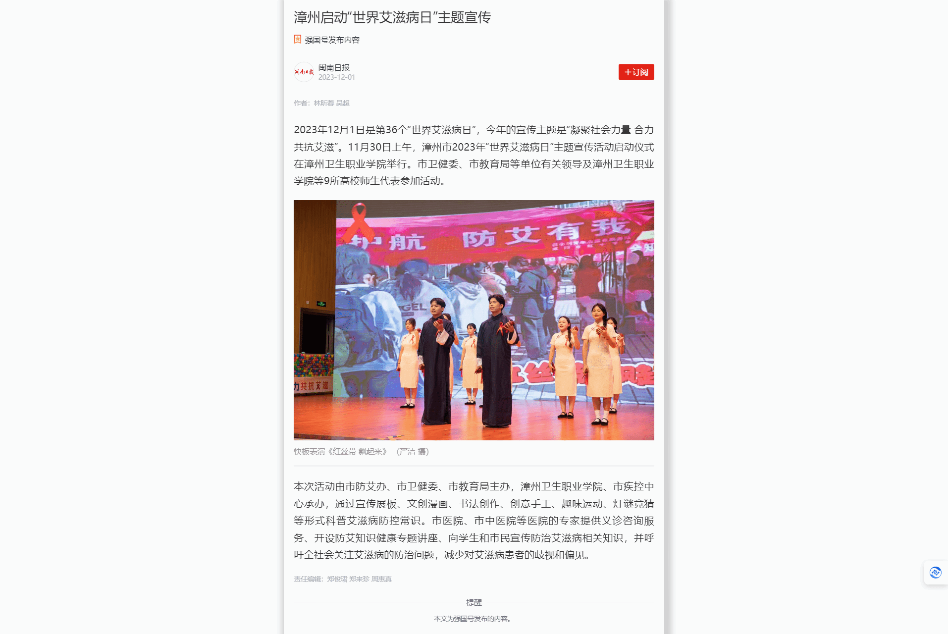 学习强国:漳州启动“世界艾滋病日”主题宣传
