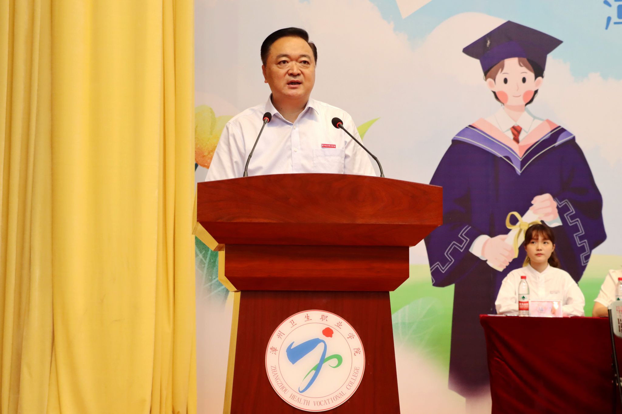 6月20日上午,漳州卫生职业学院2023届学生毕业典礼在体育艺术中心隆重举行。学校党委书记陈超、校长何坚、党委副书记黄乃光、纪委书记宋志海、副院长沈小美、副院长陈义三、副院长蔡韶滨,各处室(系部)领导、教师代表、辅导员代表和2023届全体毕业生参加。典礼由党委副书记黄乃光主持。
