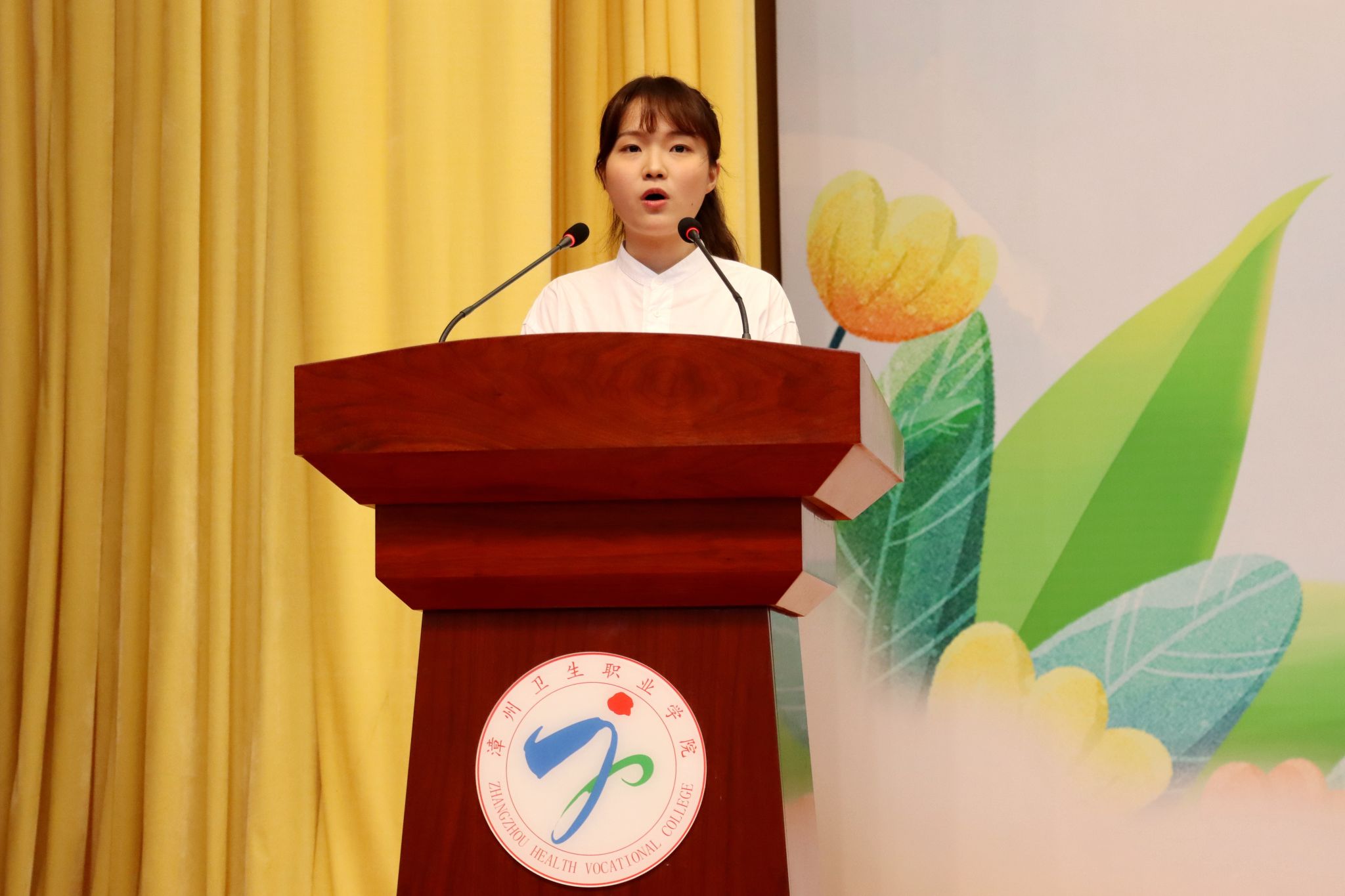 药学系学生代表、国家奖学金获得陈霓同学深情回顾了三年大学生活,号召全体毕业生怀揣梦想,牢记领导老师的叮咛和期望,秉承“厚德、励志、笃学、尚能”校训,在担当和热爱中绽放最美好的青春。