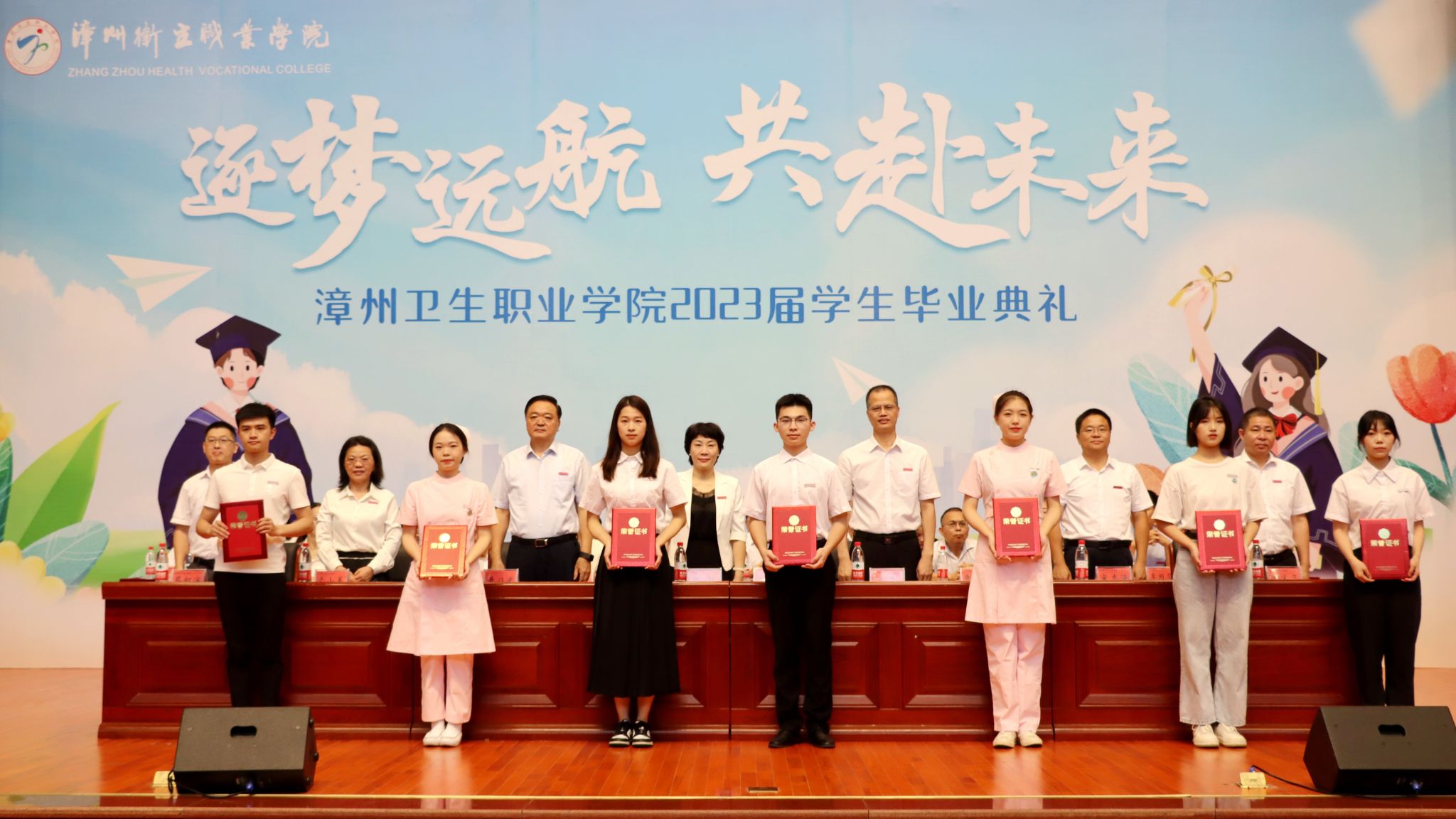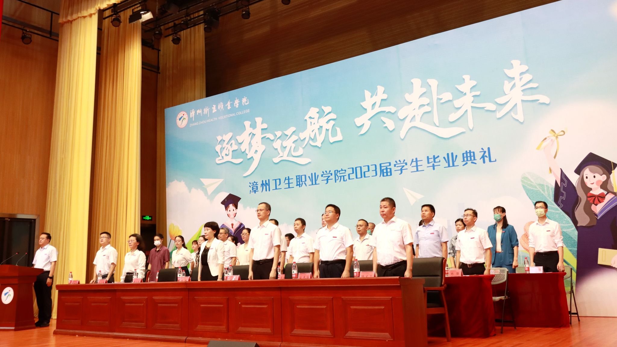 毕业典礼在庄严的国歌声中正式拉开序幕。黄乃光副书记宣读《关于表彰漳州卫生职业学院2023届优秀毕业生的决定》,勉励同学在今后的学习工作中再创佳绩,以实际行动为母校争光。校领导为学生代表分别颁发优秀毕业生荣誉证书和毕业证书。