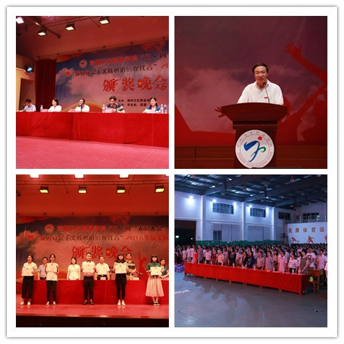 5月5日晚,漳州卫生职业学院2016年五四表彰大会在阳光体育活动中心隆重举行。院领导沈国星、郑长江以及党委委员蓝淑华、杨丽珠出席大会,来自闽南师范大学、漳州职业技术学院、漳州城市职业学院的团委老师和学院副科级以上干部、师生代表共800余人参加大会。表彰大会由学生处蔡志远主持。