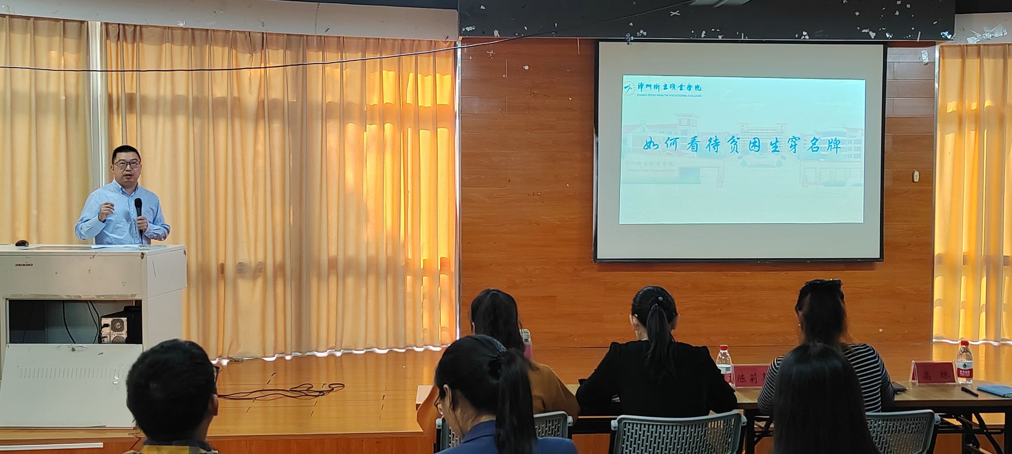 会上,各二级学院辅导员针对“如何看待贫困生穿名牌现象”这一热点问题进行主题交流研讨。口腔医学院杨元杰、中医与康复学院林汕淞、临床医学院常金平、医学技术学院周明慧、药学院简颖臻、护理学院郑思敏、朱婉芬依次进行发言。现场气氛热烈。大家从现象分析原因,从原因寻找对策,一致认为要一分为二辩证地看待贫困生穿名牌现象,要加强学生诚信、理性消费、勤俭节约、自尊自信等方面教育引导,进一步科学精准公平做好贫困生资助育人工作,做到扶贫又扶智、助困又自强。