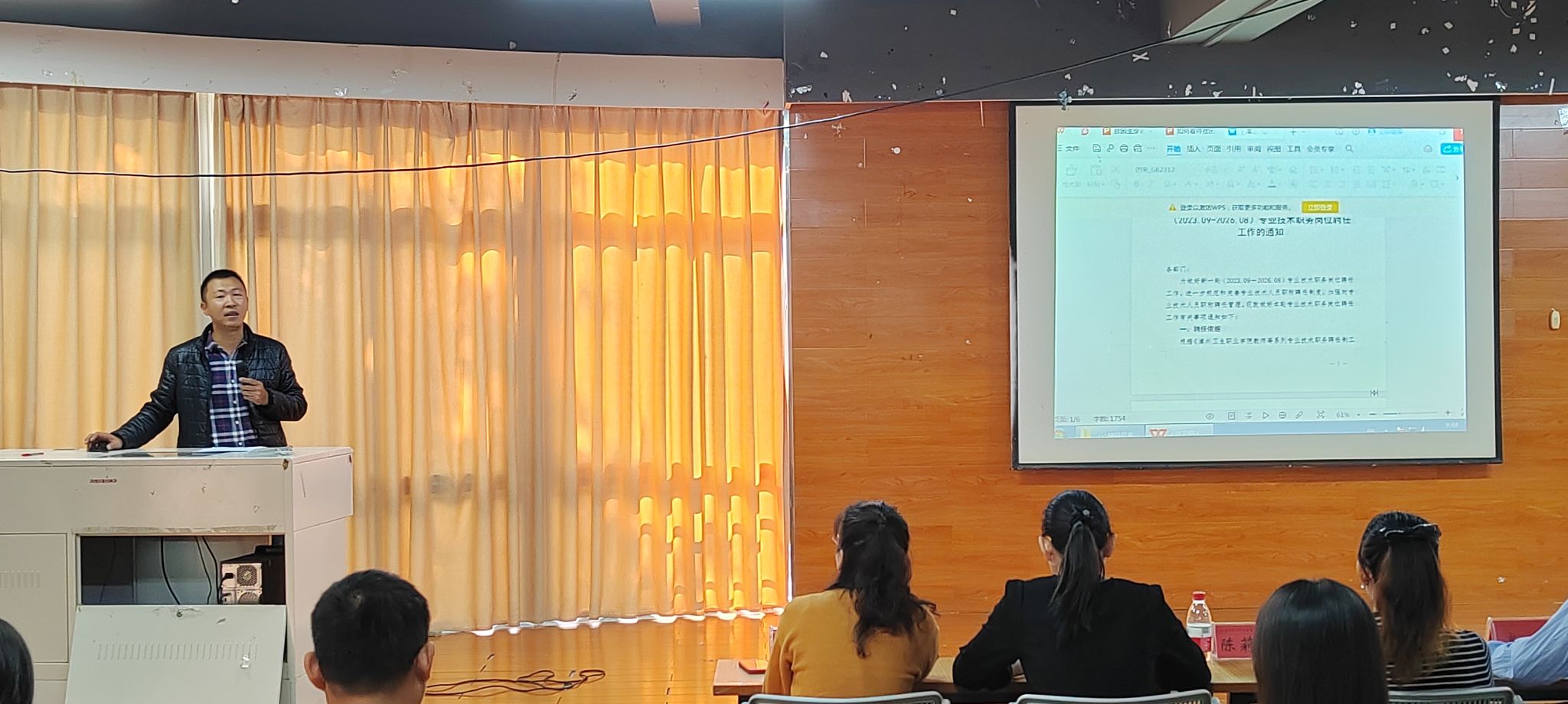 接着,李伟炜老师结合《漳州卫生职业学院教师等系列专业技术职务聘任制工作实施方案》,说明近期学生思想政治教育教师系列专业技术人员岗位竞聘情况,鼓励大家努力在平时做好本职工作前提下,结合工作做好科研,努力提升教育教学和管理水平,努力晋升自己的职称。