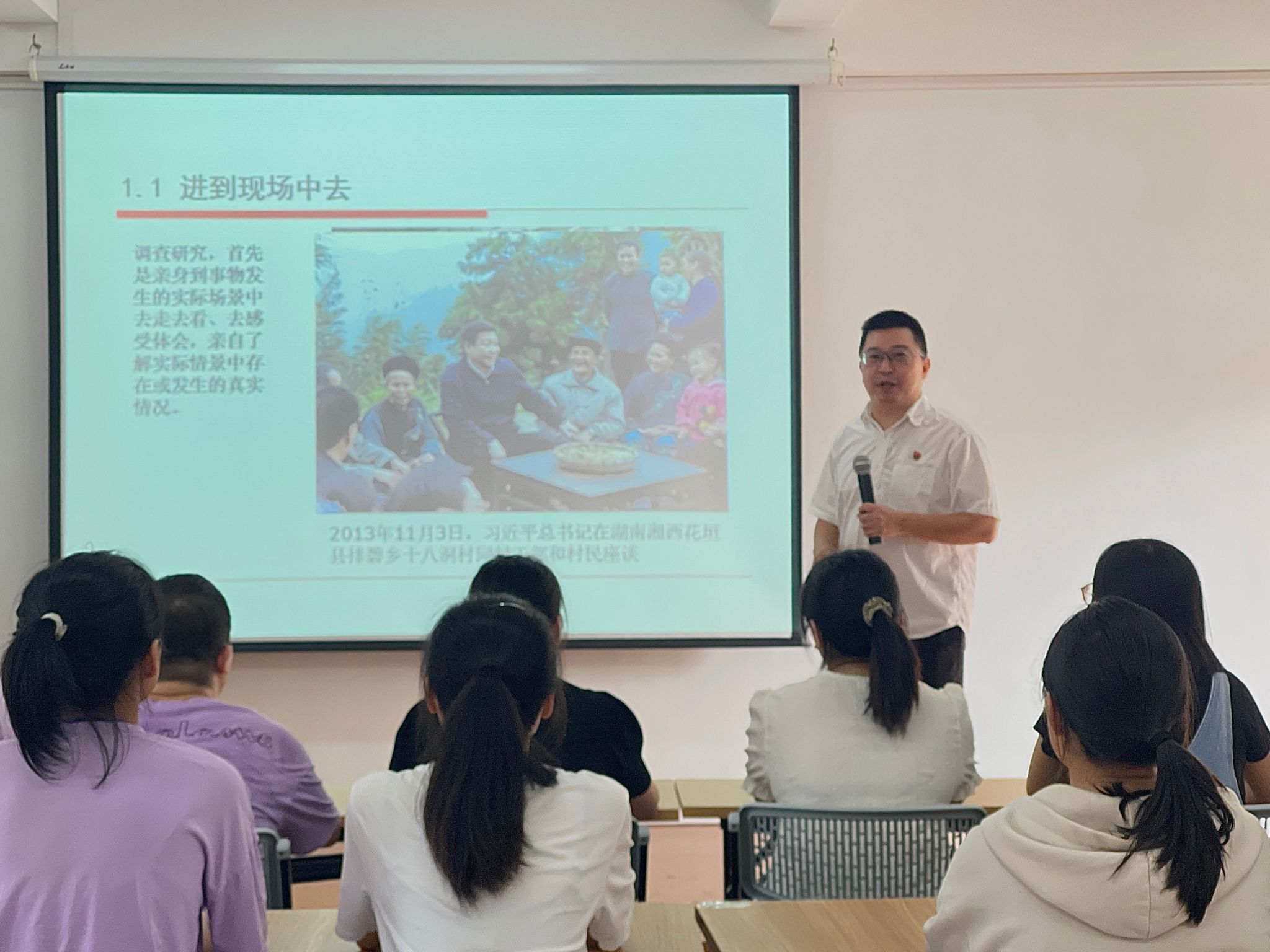 为深入开展学习贯彻习近平新时代中国特色社会主义思想主题教育,11月8日上午,机关第一党总支书记高林在学生素质发展中心二楼举办《大兴调查研究之风》主题教育专题党课。