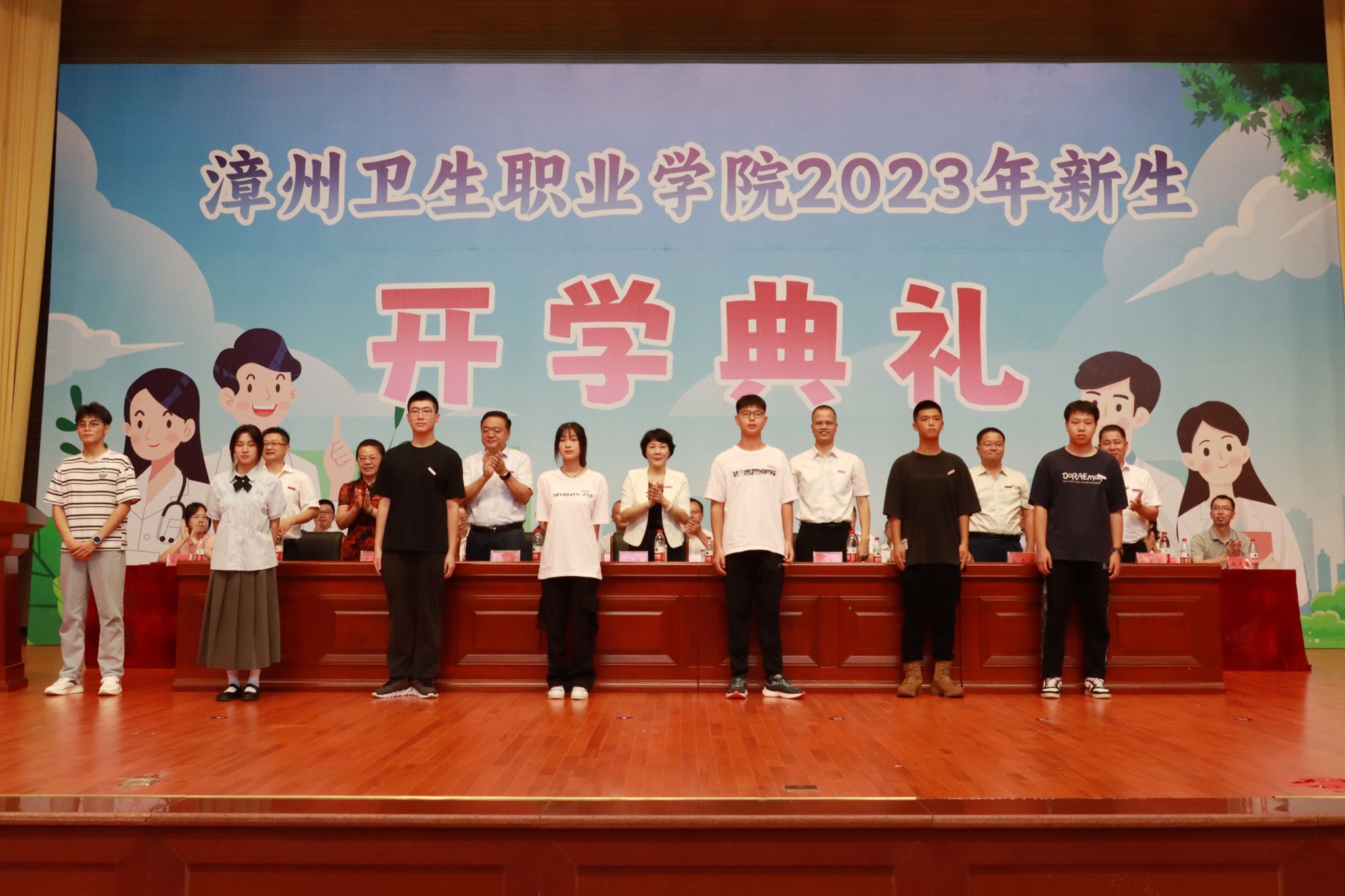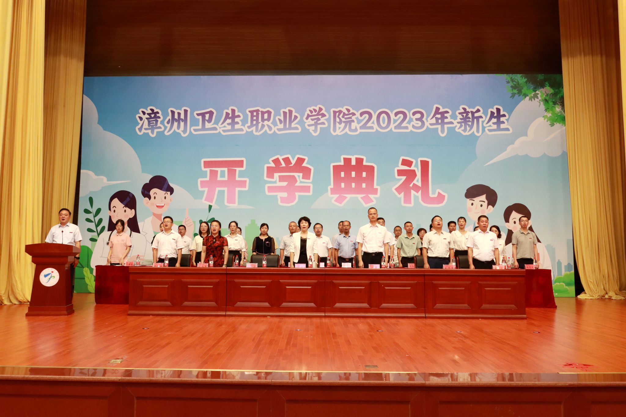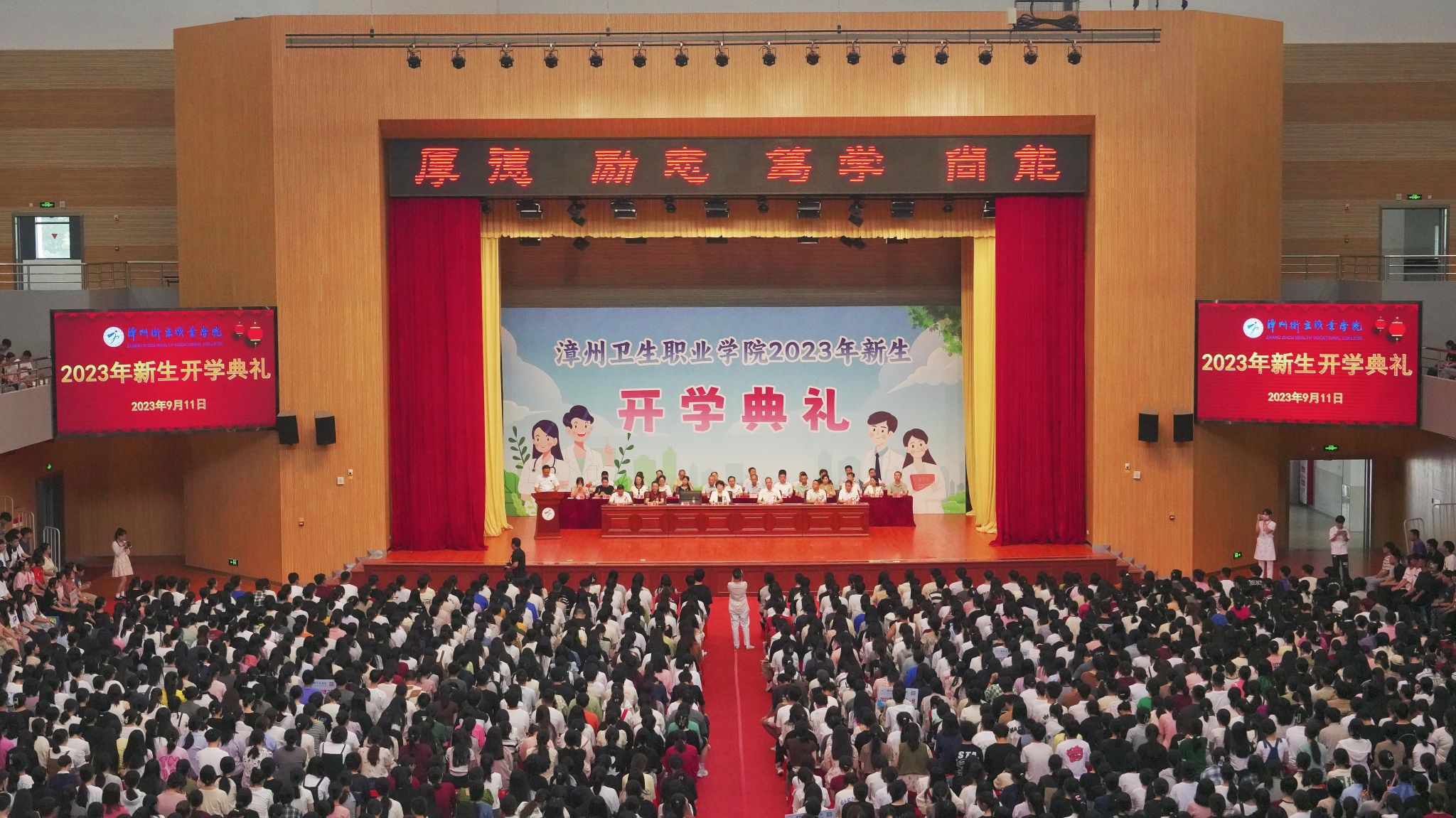9月11日上午,漳州卫生职业学院2023年新生开学典礼在体育艺术中心隆重举行。学校领导陈超、何坚、黄乃光、宋志海、沈小美、陈义三出席开学典礼,相关职能部门负责人、二级学院党政负责人、师生代表及全体2023级新生参加开学典礼。开学典礼由学校党委副书记黄乃光主持。