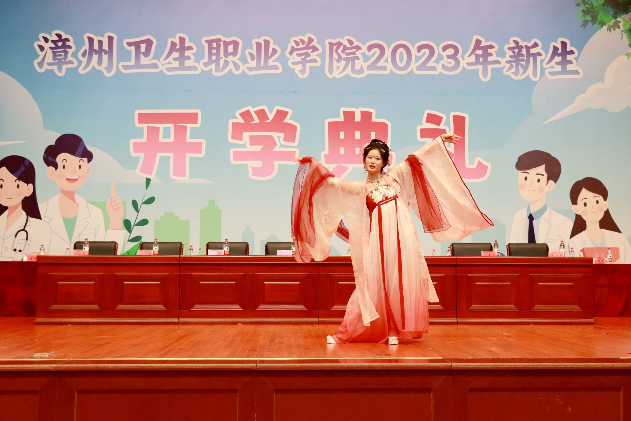 典礼开始前,校青年志愿者中心礼仪队、校社联健身俱乐部、荷华汉服社分别为大家带来精彩的时装走秀和“霓裳羽衣”走秀,展现出漳卫学子昂扬向上的精神面貌。
