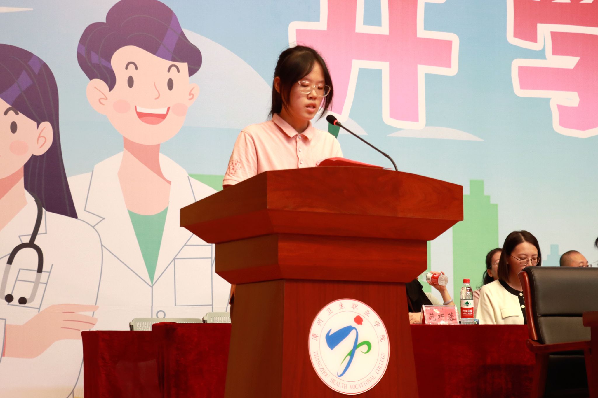 新生代表2023级高职口腔医学二班张雅玲同学号召全体同学牢记习近平总书记的谆谆教导,为强国建设、民族复兴挺膺担当,共同践行伟大时代赋予的光荣使命,努力兑现“请党放心、强国有我”的庄严承诺。