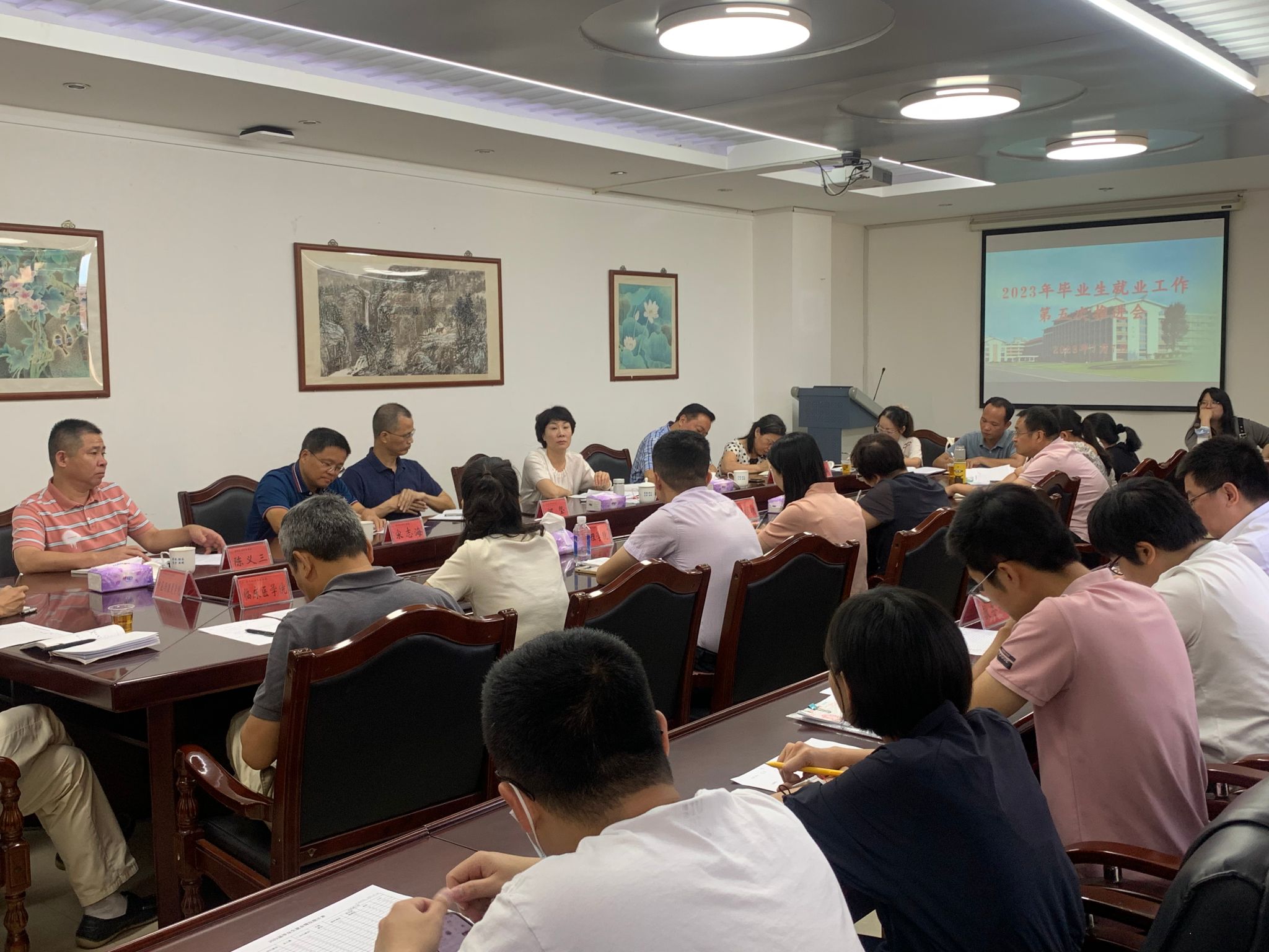 7月7日上午,我校在行政楼五楼会议室召开2023届毕业生就业工作第五次推进会。学校在家领导,各二级学院党总支书记(副书记)、院长,党政办、学工部、教务处、宣传部等职能部门负责人,全体毕业班辅导员(班主任)参加会议。会议由党委副书记黄乃光主持。