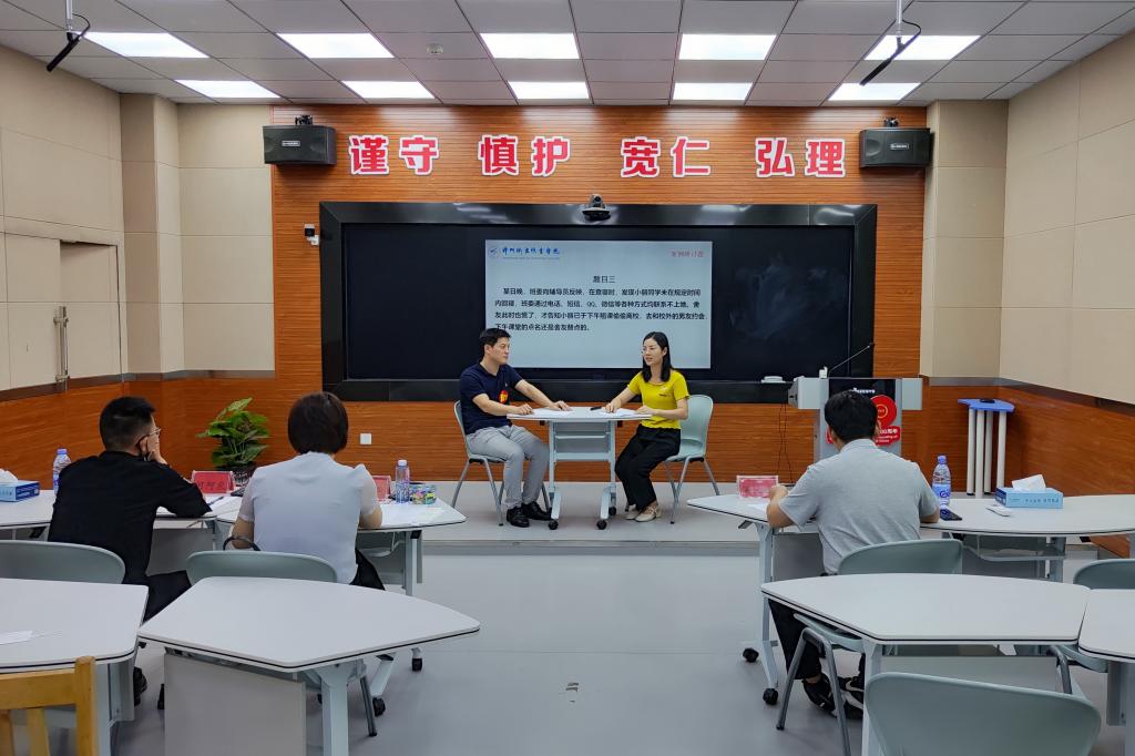 共有40多名辅导员参加了基础知识测试、案例研讨、谈心谈话等环节的激烈角逐。基础知识测试环节重在考察辅导员理论知识水平;案例研讨环节重在考察辅导员综合运用、理论分析问题、研判问题、解决问题的能力;谈心谈话环节考察辅导员对学生特征、学生成长成才规律的了解把握程度,对学生的教育引导能力、解决理论困惑和实际问题的能力等。经院外专家评审,共评选出一等奖1人、二等奖3人、三等奖5人、优秀奖6人。