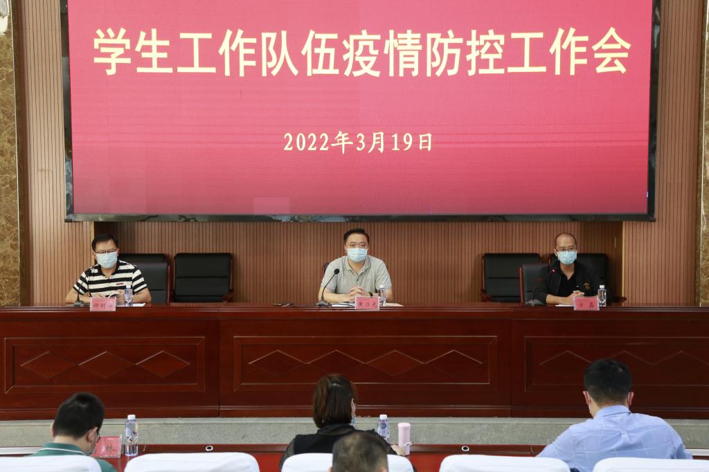 黄乃光在讲话中提出三点意见,一是疫情就是命令,全体学工队伍要提高政治站位,紧绷疫情防控之弦,严格落实“两案九制”工作内容,坚决守好“不让疫情进入校园、不让疫情在校园扩散”底线。二是作为彰显担当,全体学工队伍要加强学生学生思想政治教育,多深入学生宿舍,了解学生所思所想所急,主动关心关爱学生,确保学生身心健康和安全稳定。三是行动检验党性,全体学工队伍要积极参与全市疫情防控志愿服务工作,主动担当、勇敢作为,共同打赢疫情防控攻坚战。