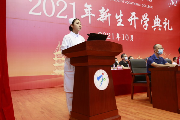 新生代表2021级高职护理八班刘倩同学倡议全体同学做眼里有光、心中有梦的“破风少年”,在风华正茂的年纪书写青春新的篇章,努力成为新时代健康中国建设者与人民健康的守护者。