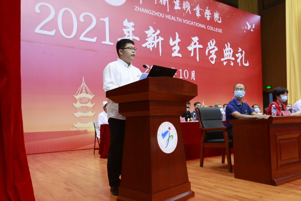 在校生代表2020级高职康复治疗技术一班陈锦楠同学号召全体新生学会珍惜有缘人、成长机会和大学时光,共同修炼“有热度”的漳卫学子,成就未来“有温度”的大医精诚。